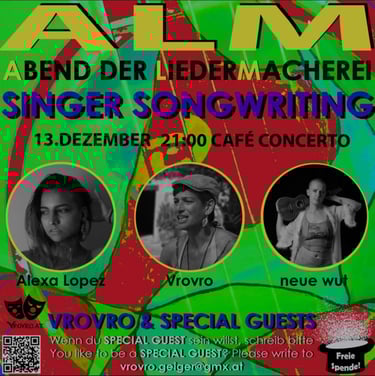 Falls du Veranstaltungen oder Festivals kennst, zu denen meine Musik passen würde, freue ich mich über deine Nachricht. Ich trete gerne auch bei privaten Feiern auf :)
